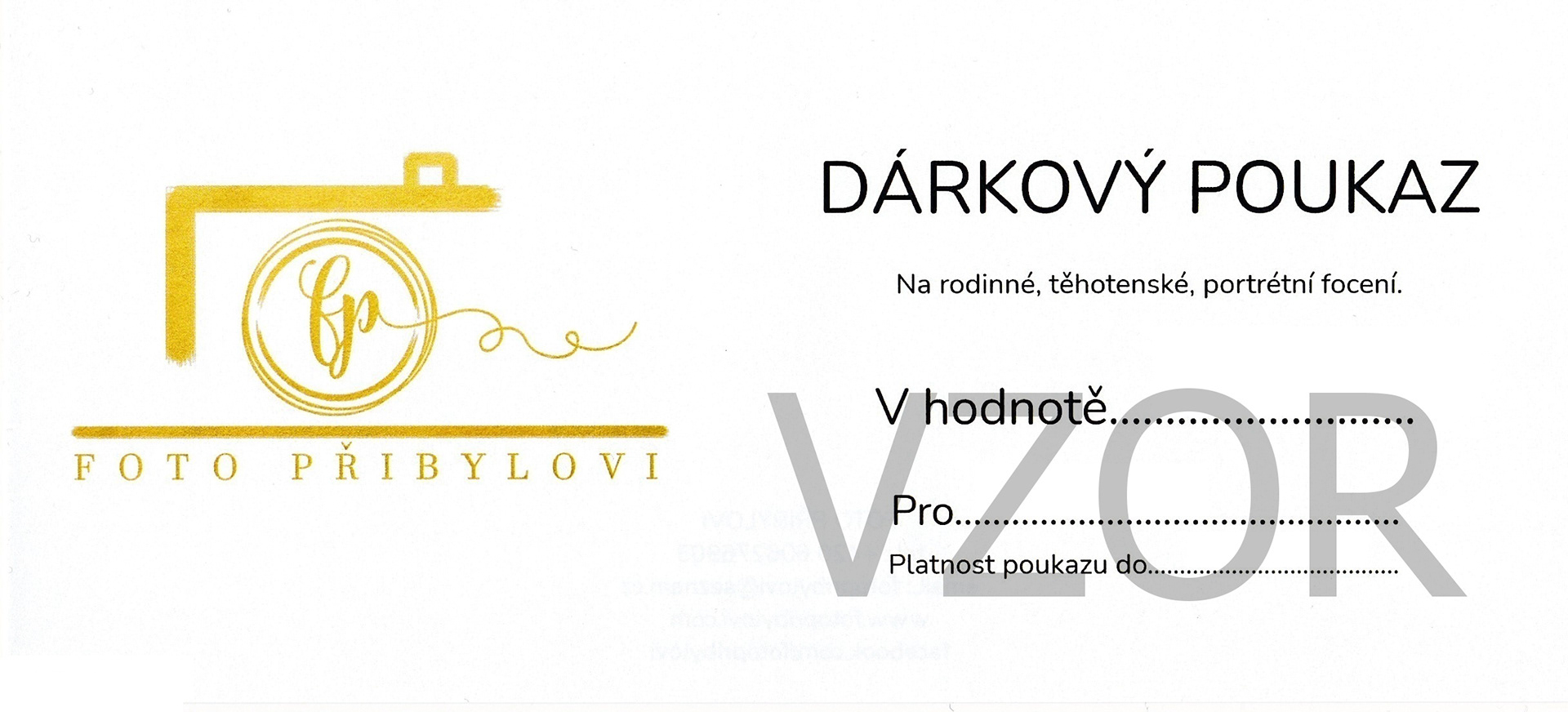 Dárkové poukazy prodáváme na minibalíčky, klasické focení i na částku dle Vašeho přání.